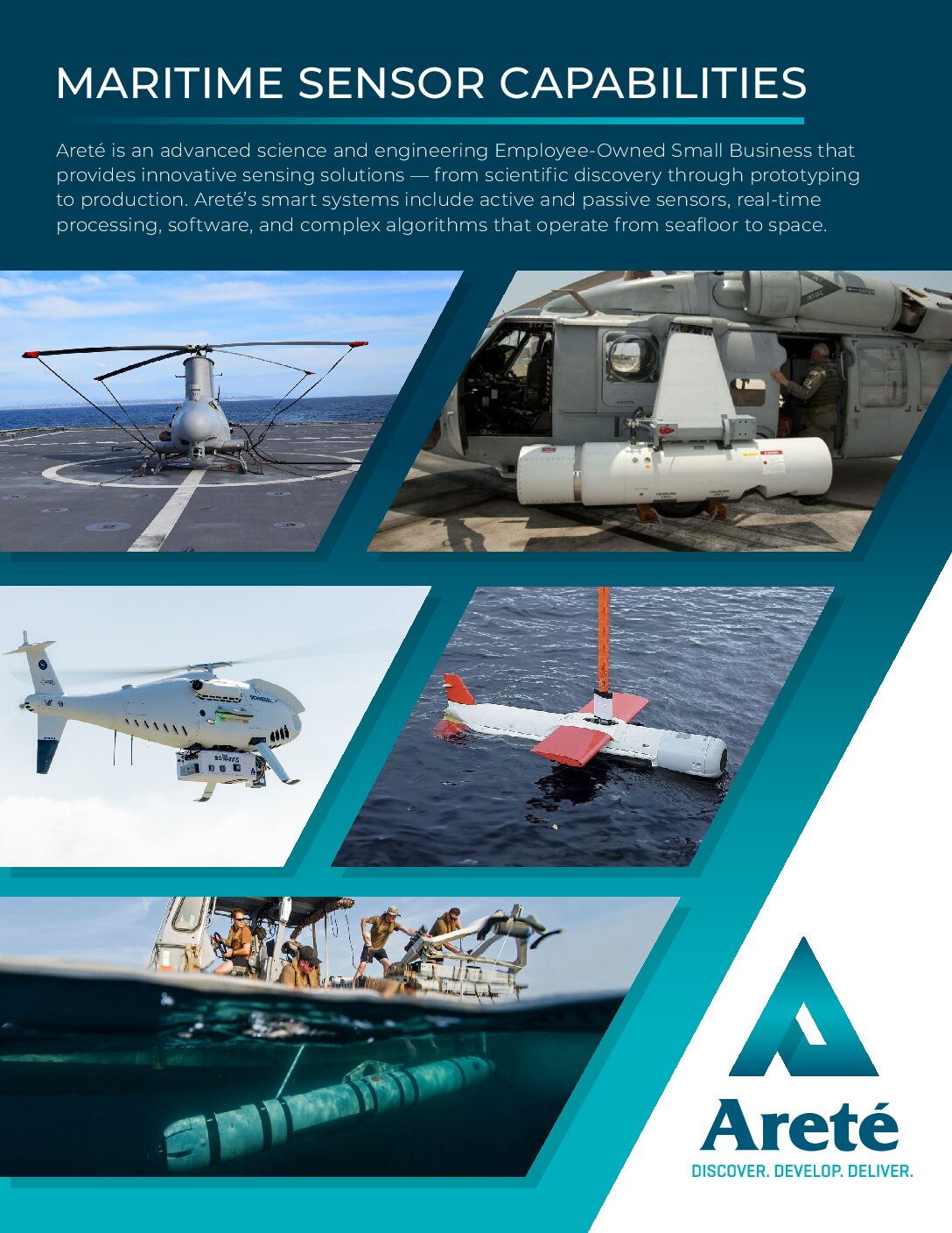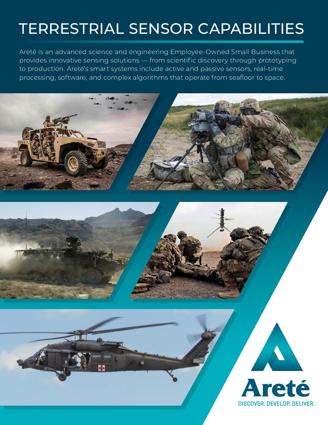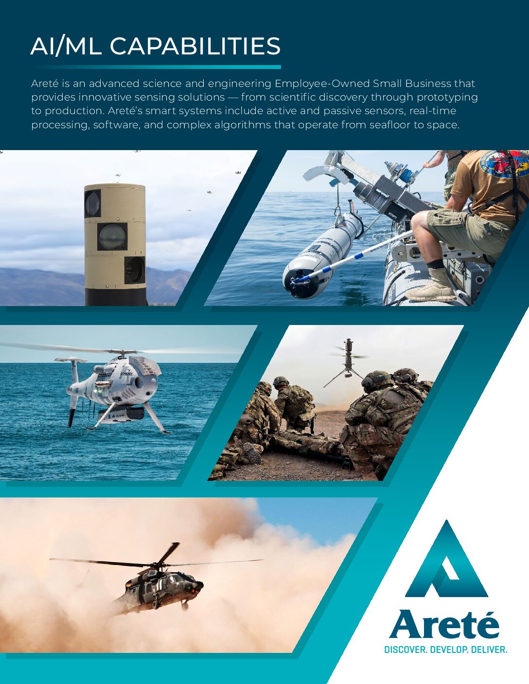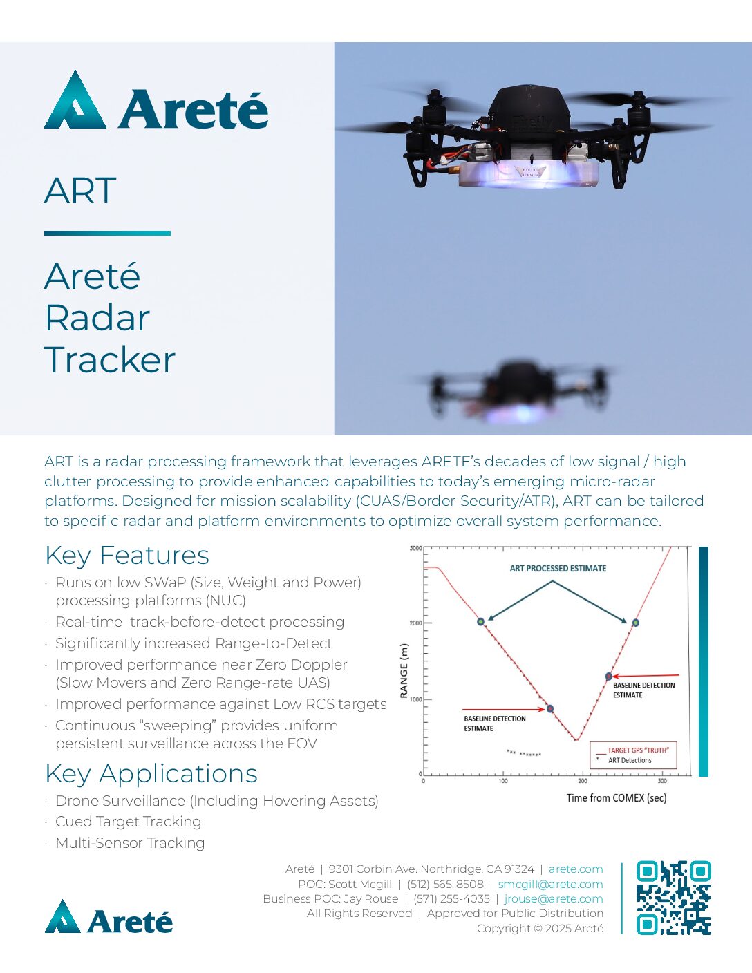 Areté’s core competencies have broad applicability across domains, sensing modalities, and use cases – commercial, defense, and other government customers. They take the form of software, hardware or integrated smart systems. The links below provide detailed descriptions of our technology portfolios and individual products, organized by Sector.